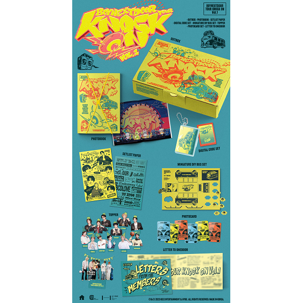 *OUTBOX*PHOTOBOOK (120P)*SETLIST PAPER*DIGITAL CODE SET (ABOUT 254 MINS)*MINIATURE DIY BUS SET*TOPPER SET (13EA)*PHOTOCARD SET (6EA)*LETTER TO ONEDOOR