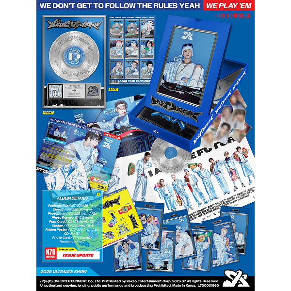 *PACKAGE BOX : 15.7 x 23 x 2.6 cm*SLEEVE : 15.8 x 23 x 2.9 cm*PHOTOBOOK : 15 x 22 cm / 72p*PHOTO FRAME : 15.1 x 21.9 cm*POSTCARD : 10.9 x 17.8 cm / 7ea*STICKER : 17 x 12 cm*FOLDED POSTER : 37 x 25 cm*CD-R*PHOTOCARD : 5.5 x 8.5 cm / random out of 7