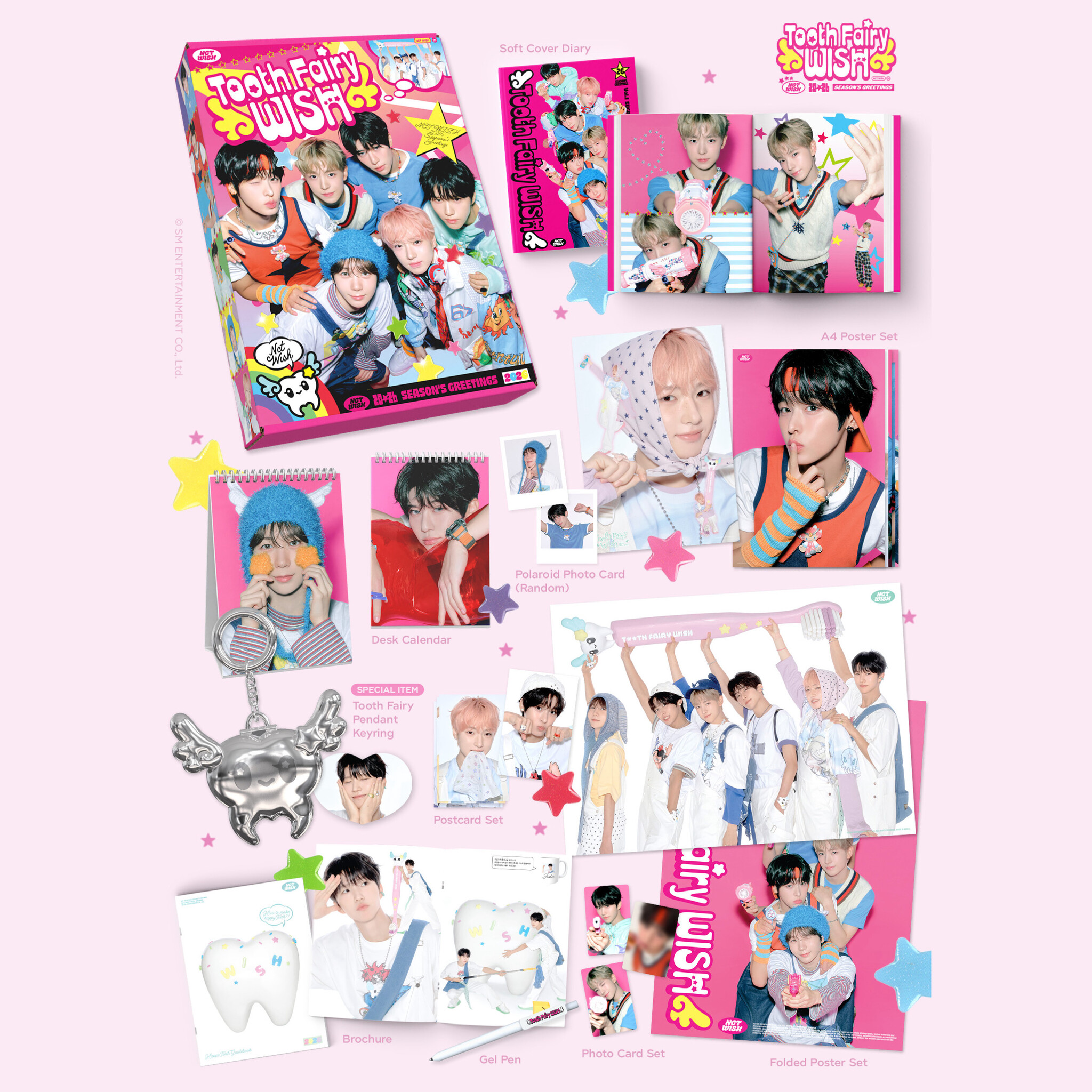 *Package : 215 X 311 X 53 mm *Desk Calendar : 170 X 230 mm / (14p)*Soft Cover Diary : 148 X 210 mm / (120p)*Folded Poster Set : 287 X 400 mm / 2pcs*A4 Poster Set : 200 X 287 mm / 12pcs*Brochure : 174 X 233 mm / (14p)*Postcard Set : 102 X 160 mm / 6pcs*Photo Card Set : 55 X 85 mm / 13pcs- Paper Holder : 80 X 108mm / 1pc- Photo Card : 55 X 85mm / 6pcs- Selfie Photo Card : 55 X 85mm / 6pcs*Gel pen : 14cm / 1pc*Polaroid Photo Card (Random) : 88 X 107 mm / 1pc*(SPECIAL) Tooth Fairy Pendant Keyring- Pendant Keyring : 65 X 53mm / 1pc- Photo Sheet : 32 X 23mm / 6pcs