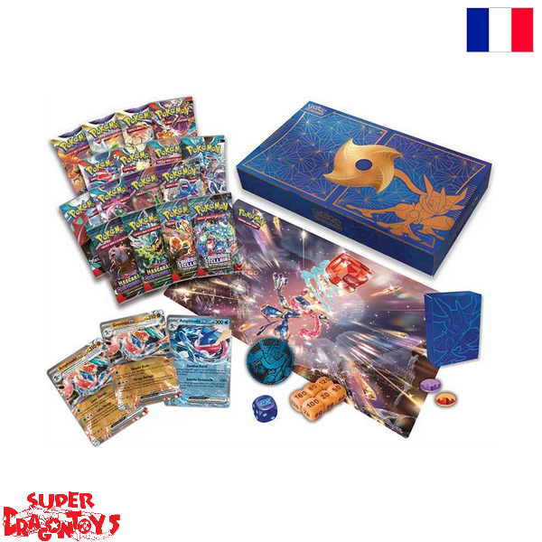 -1 carte brillante texturée d'Amphinobi en tant que Pokémon-ex Téracristal-1 carte promo brillante d'Amphinobi-ex-1 carte en métal texturée d'Amphinobi en tant que Pokémon-ex Téracristal-1 tapis de jeu-1 étui pour deck-1 pièce métallisée d'Amphinobi-6 dés marqueurs de dégâts-2 marqueurs d'États Spéciaux en plastique-16 boosters du JCC pokémon (10 cartes aléatoires par booster)-1 carte à code pour le JCC Pokémon Live