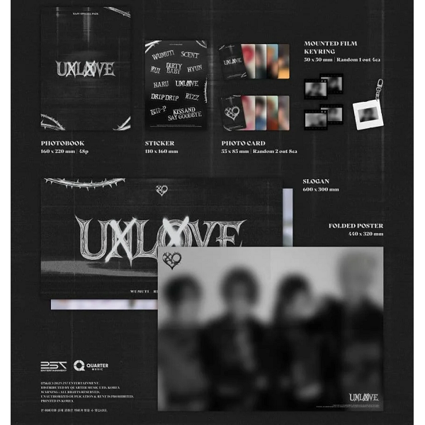 *OUTBOX*PHOTOBOOK (48P)*PHOTOCARD (2 RANDOM OUT OF 8)*STICKER*MESSAGE POSTCARD (4EA)*HEAT SENSITIVE MESSAGE CARD (RANDOM OUT OF 4)*LENTICULAR CARD (RANDOM OUT OF 4)*MOUNTED FILM KEYRING (RANDOM OUT OF 4)*FOLDED POSTER*SLOGAN