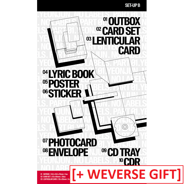 ---[SET-UP B VER.]---*OUTBOX*CARD SET (36EA)*LENTICULAR CARD*LYRIC BOOK (24P)*POSTER (2EA)*STICKER*PHOTOCARD (RANDOM OUT OF 3)*ENVELOPE*CD TRAY*CD-R