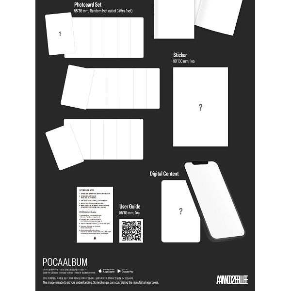 *OUTBOX*MINI PHOTOBOOK (RANDOM OUT OF 3)*QR CARD (RANDOM OUT OF 3)*PHOTOCARD SET (5EA / RANDOM SET OUT OF 3)*STICKER*USER GUIDE