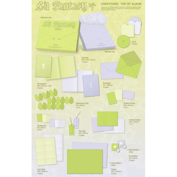 *OUTBOX*CD-R*PHOTOBOOK (88P)*ENVELOPE*INTERVIEW CARD (RANDOM OUT OF 3)*PRINTED PHOTO (RANDOM OUT OF 3)*PHOTOCARD (4 RANDOM OUT OF 15)*KEY TAG*FOLDED POSTER (RANDOM OUT OF 3)*LYRIC MAP