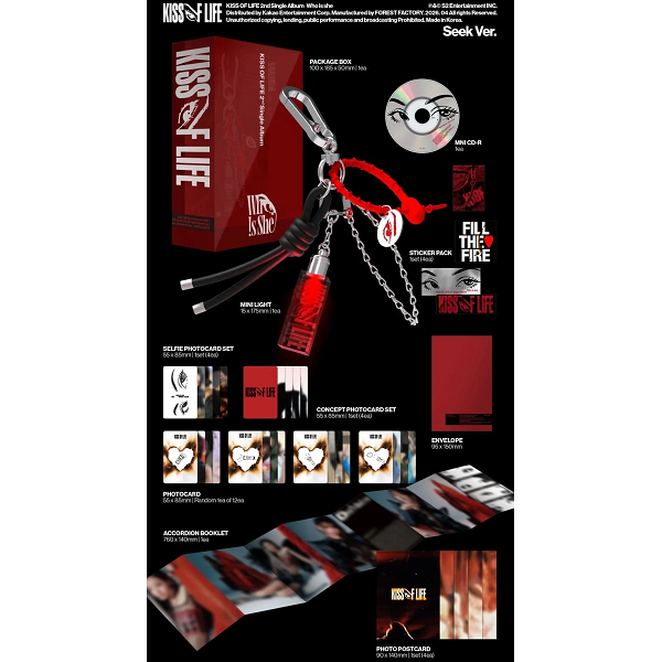 *PACKAGE BOX*MINI CD-R*MINI LIGHT*STICKER PACK (4EA)*SELFIE PHOTOCARD SET (4EA)*CONCEPT PHOTOCARD SET (4EA)*PHOTOCARD (RANDOM OUT OF 12)*ENVELOPE*ACCORDION BOOKLET*PHOTO POSTCARD SET (4EA)