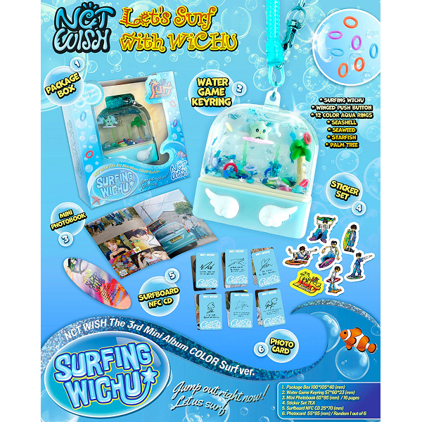 *PACKAGE BOX*WATER GAME KEYRING*MINI PHOTOBOOK (16P)*STICKER SET (7EA)*SURFBOARD NFC CD*PHOTOCARD (RANDOM OUT OF 6)