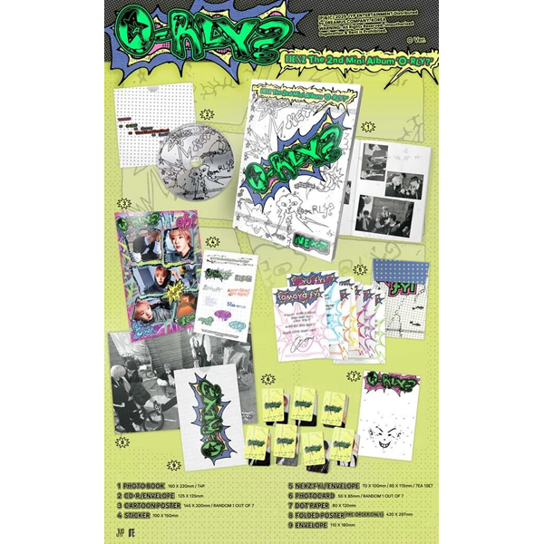 *PHOTOBOOK : 16 x 22 cm / 74p*CD-R & ENVELOPE*STICKER : 10 x 15 cm*CARTOON POSTER : 14.5 x 20 cm / random out of 7*NEXZ FYI ENVELOPE SET : 7 x 10 cm / 7ea*ENVELOPE : 11 x 18 cm*DOT PAPER : 8 x 12 cm*PHOTOCARD : 5.5 x 8.5 cm / random out of 7*FOLDED POSTER : 42 x 29.7 cm / PREORDER ONLY !