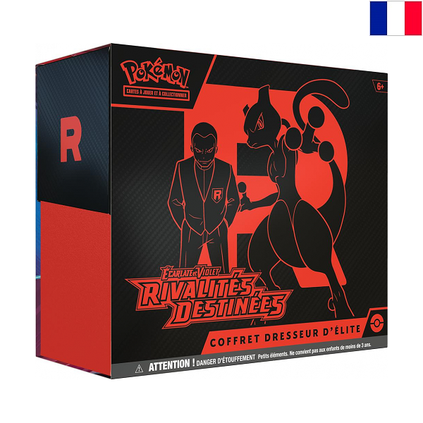 Contenu du Coffret :*9 boosters Pokémon JCC : Écarlate & Violet—Rivalités Destinées*1 carte promo brillante en plein format mettant en vedette Wobbuffet de la Team Rocket*65 protège-cartes à thème pour protéger votre deck*45 cartes Énergie du JCC Pokémon*Un guide du joueur pour l’extension Écarlate & Violet—Rivalités Destinées*6 dés marqueurs de dégâts*1 dé de pile ou face homologué pour la compétition*2 marqueurs d’état en plastique*Une boîte de rangement robuste avec 4 séparateurs pour garder tout organisé*Une carte à code pour le Jeu de Cartes à Collectionner Pokémon Live