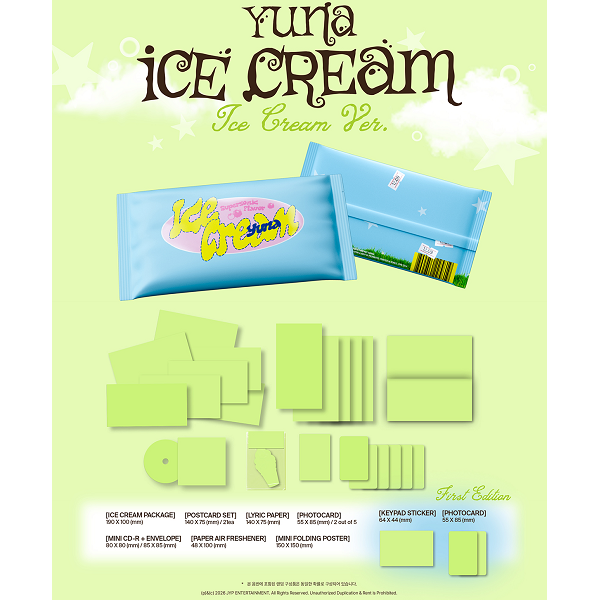 *ICE CREAM PACKAGE*POSTCARD SET (21EA)*LYRIC PAPER*PHOTOCARD (2 RANDOM OUT OF 5)*MINI CD-R & ENVELOPE*PAPER AIR FRESHENER*MINI FOLDING POSTER