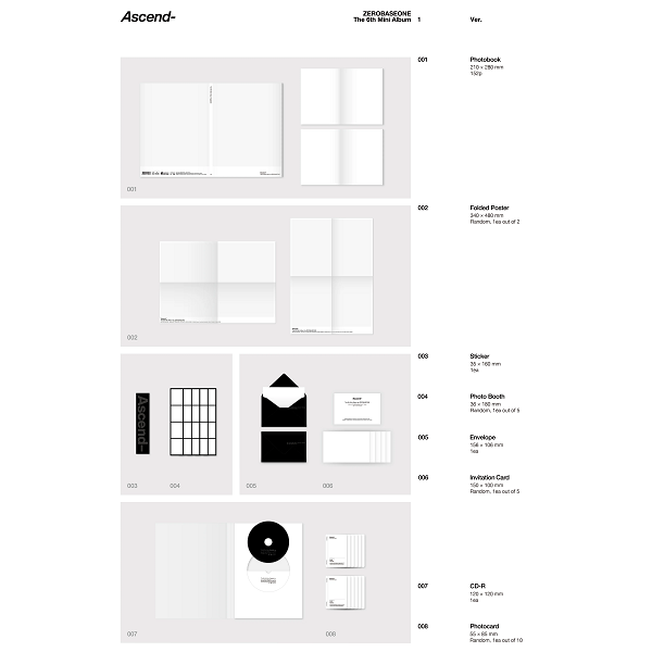---[1 VER.]---*PHOTOBOOK (152P)*FOLDED POSTER (RANDOM OUT OF 2)*STICKER*PHOTOBOOTH (RANDOM OUT OF 5)*ENVELOPE*INVITATION CARD (RANDOM OUT OF 5)*CD-R*PHOTOCARD (RANDOM OUT OF 10)