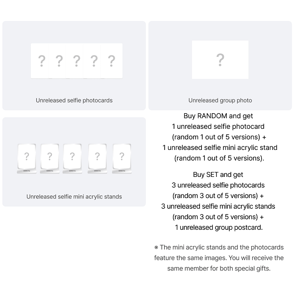 [WEVERSE GIFT] : RANDOM SELFIE PHOTOCARD (OUT OF 5) + RANDOM SELFIE MINI ACRYLIC STAND (OUT OF 5)