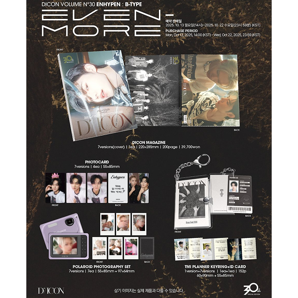 *DICON MAGAZINE (200P)*PHOTOCARD (4EA)*POLAROID PHOTOGRAPHY SET (7EA)*TMI PLANNER KEYRING (152P) + ID CARD