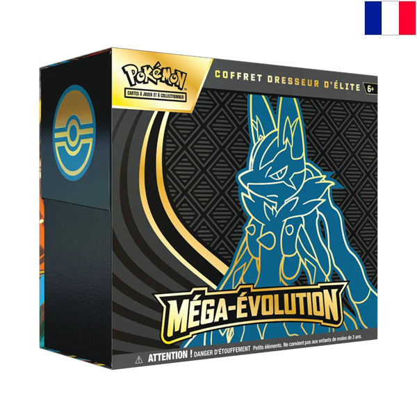 Contenu du coffret :*9 boosters du JCC Pokémon : Écarlate & Violet – Méga-Évolution*1 carte promo brillante Lucario ex full-art (exclusive)*65 protège-cartes à l’effigie de Lucario*45 cartes Énergie du JCC Pokémon*1 guide du joueur pour l’extension Méga-Évolution*6 dés pour les marqueurs de dégâts*1 dé pour le pile ou face, conforme aux compétitions*2 marqueurs d’États Spéciaux en plastique*1 boîte de rangement avec 4 séparateurs*1 carte à code pour Pokémon JCC Live