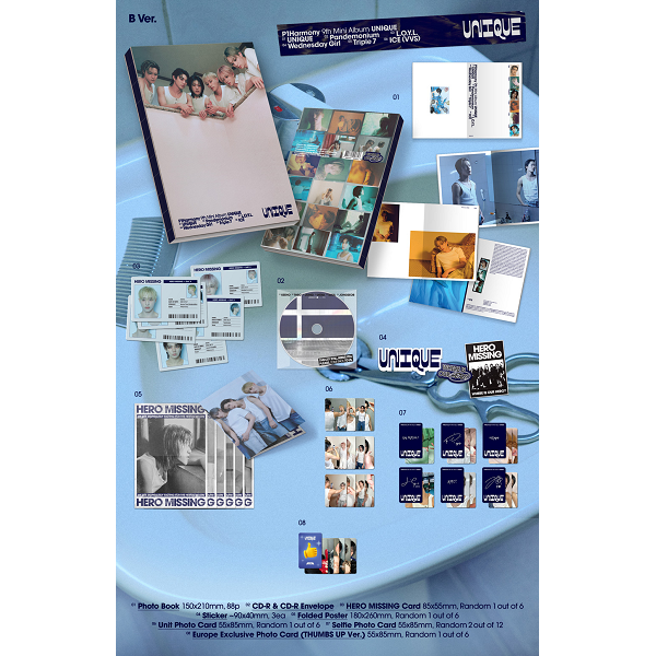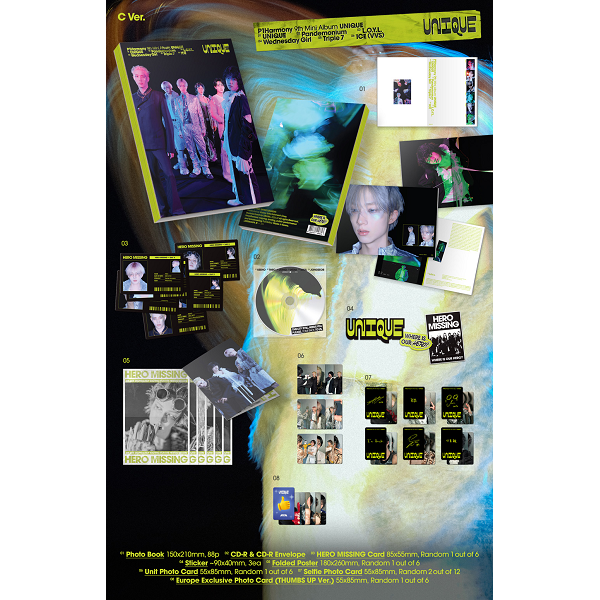 *PHOTOBOOK (88P)*CD-R & CD-R ENVELOPE*HERO MISSING CARD (RANDOM OUT OF 6)*STICKER (3EA)*FOLDED POSTER (RANDOM OUT OF 6)*UNIT PHOTOCARD (RANDOM OUT OF 6)*SELFIE PHOTOCARD (2 RANDOM OUT OF 12)