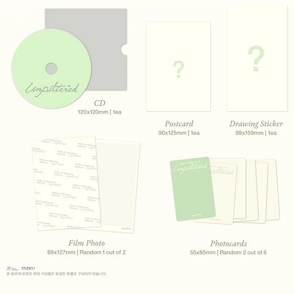 *OUTBOX*FABRIC BOOK POUCH*PENCIL*PHOTOBOOK (90P)*CD*POSTCARD*DRAWING STICKER*FILM PHOTO (RANDOM OUT OF 2)*PHOTOCARDS (2 RANDOM OUT OF 6)