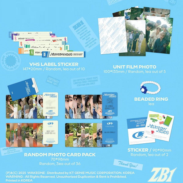 *OUT SLEEVE*VHS SHAPE CASE*PHOTOBOOK (144)*MINI CD-R (2EA)*4-CUT PHOTO (RANDOM OUT OF 9)*BEADER RING*STICKER (RANDOM OUT OF 2)*RANDOM PHOTOCARD PACK (3PC OUT OF 36)